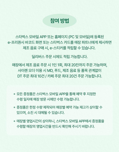 - 20잔 이상 모으면 앱에서 경품 교환권이 발급됩니다