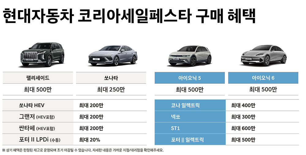 이번 기회를 통해서 현대자동차의 차종을 좀 더 저렴하게 만나보실 수 있습니다.